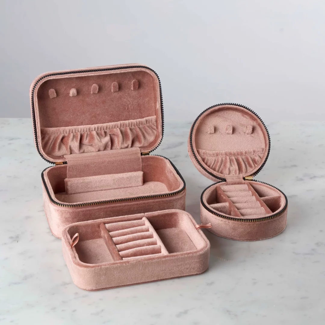Norway design Smykkeskrin velour rundt rosa