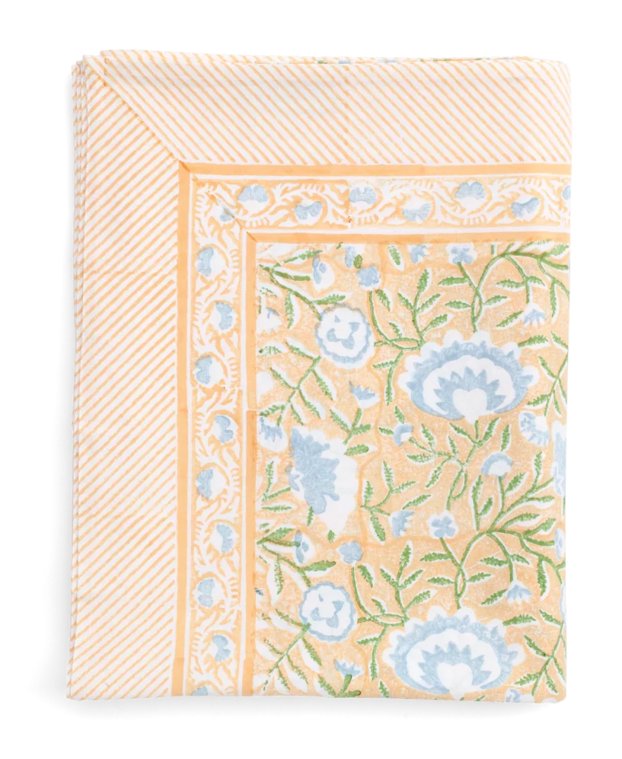 Duken er laget av slitesterk bomull av høy kvalitet og håndtrykt med den eldgamle kunsten tresnitt. Fullfør borddekningen med matchende bordbrikker og servietter.